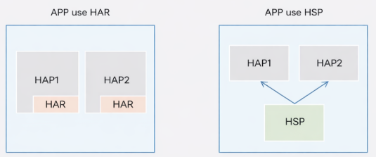 In general, if the shared code and resources are used within a single application, it is recommended to use a dynamic shared package (HSP). If the package is intended to be used as a dependency by application modules, a static shared package (HAR) can be chosen.