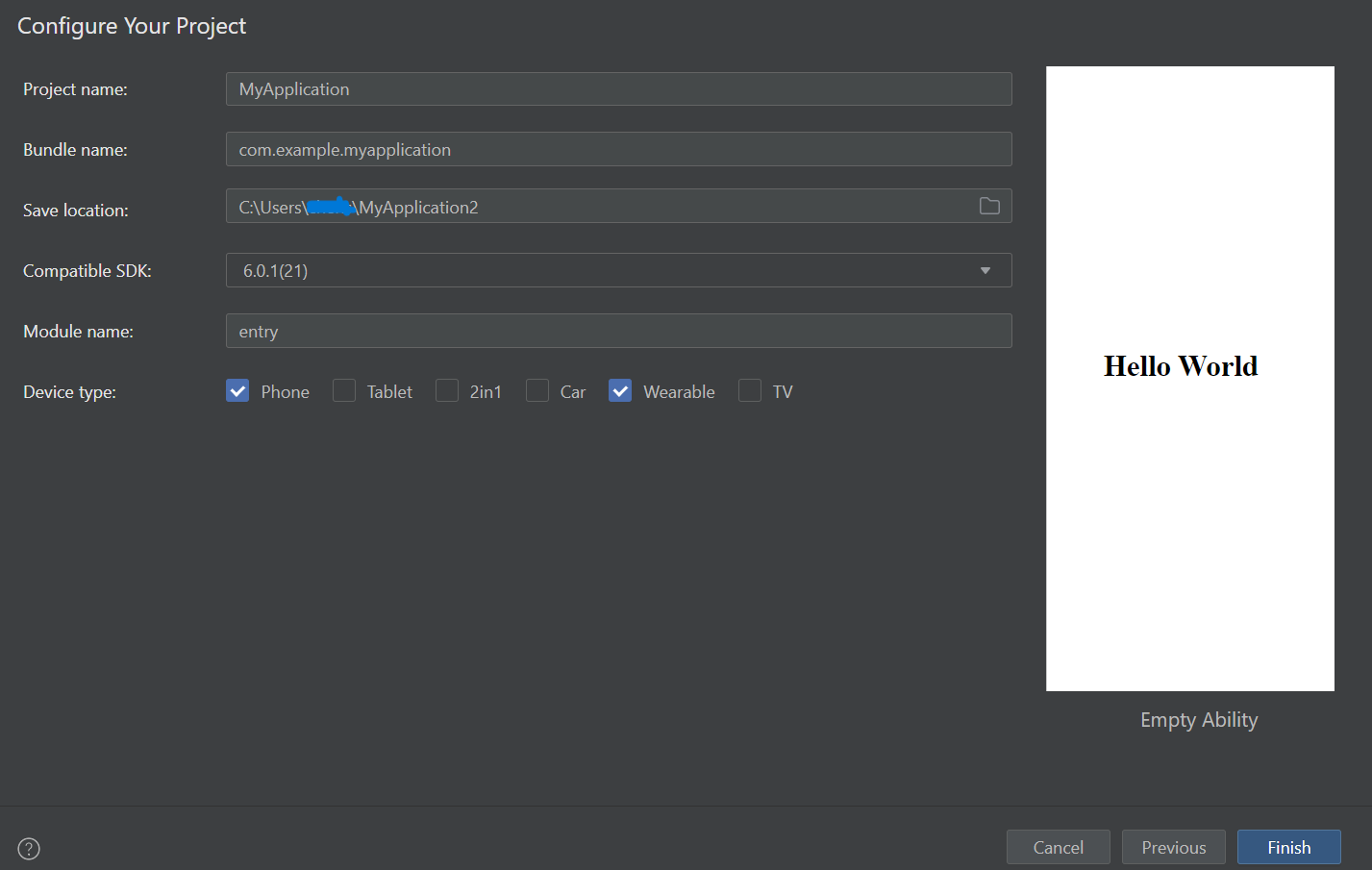 1. Choose Empty Ability as project template and proceed.
