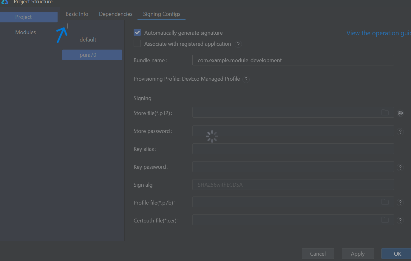 Once the signing configuration is created, your signing profile will appear under build-profile.json5 → app → signingConfigs.